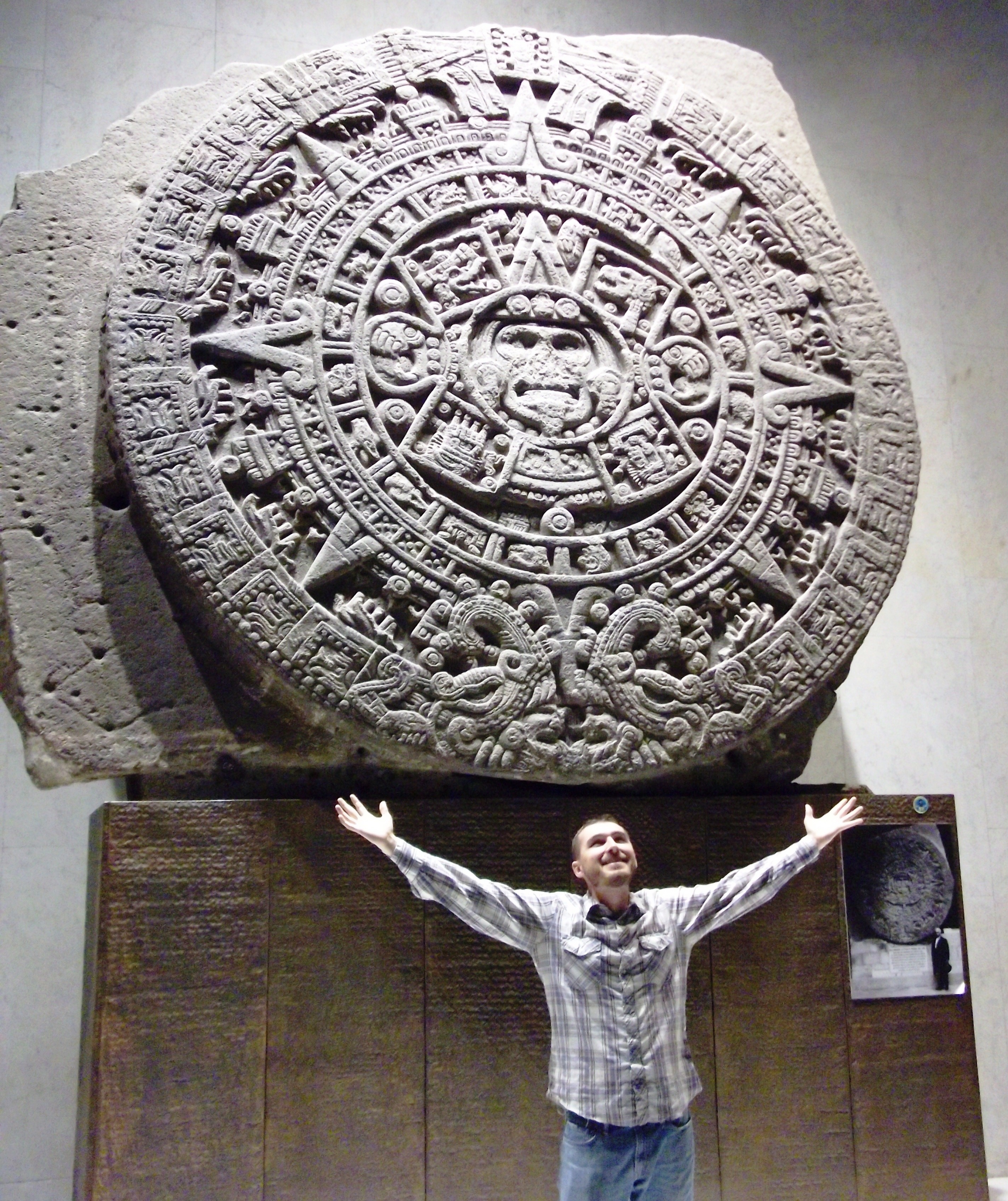 Piedra del Sol. Stone of the Sun. Aztec Sun Calendar. This gigantic artifact was uncovered in 1790 in the Zocolo of Mexico City while making repairs to the sinking cathedral. Its true purpose is unknown, some believe it is a calendar, some an elaborate compass, or a sacrificial altar. Either way it is an epic piece of history and an honor to see it in person.